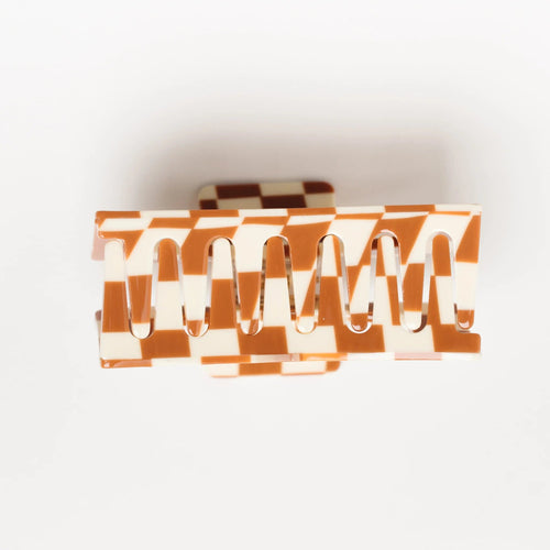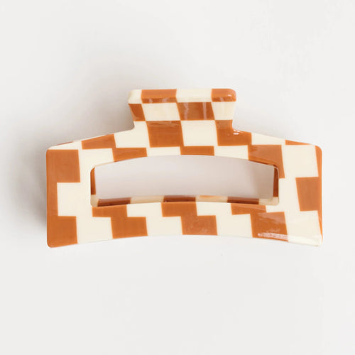 Kids Checkered Claw Clip - Rust / White