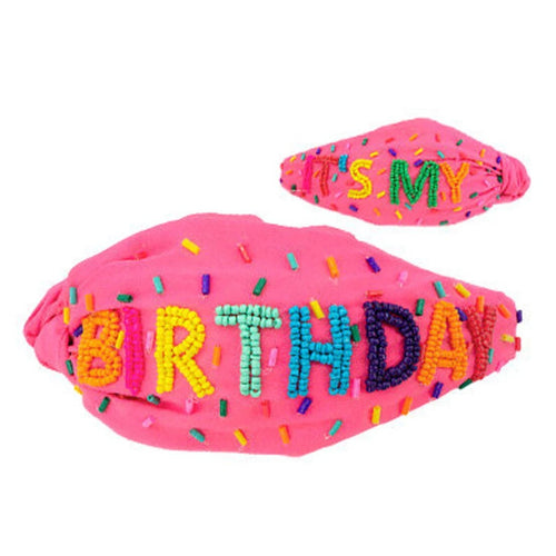 It's My Birthday Beaded Headband - Pink