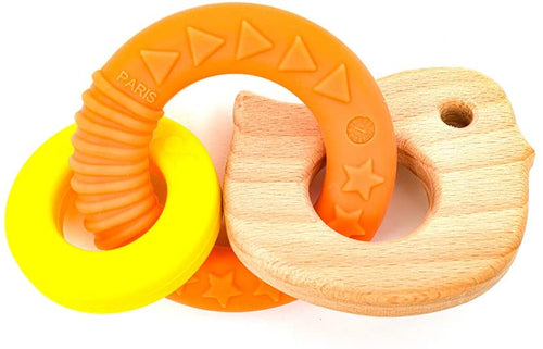 Three Hearts Key Teether Rattle - Slate