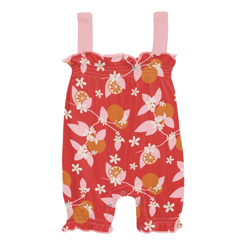 Kickee Pants Gathered Romper - Poppy Orange Blossom