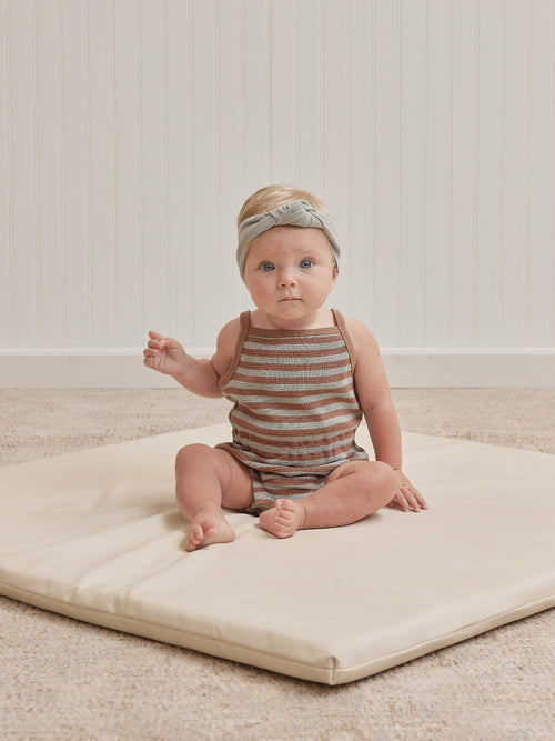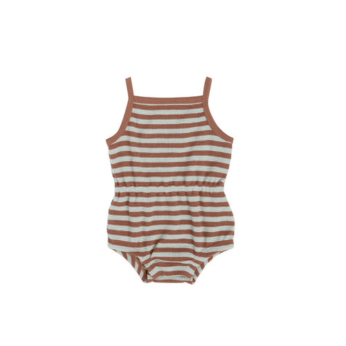 Quincy Mae Waffle Cinch Romper - Sienna + Sky Stripe