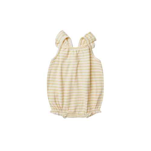 Quincy Mae Ribbed Ruffle Romper - Yellow Stripe