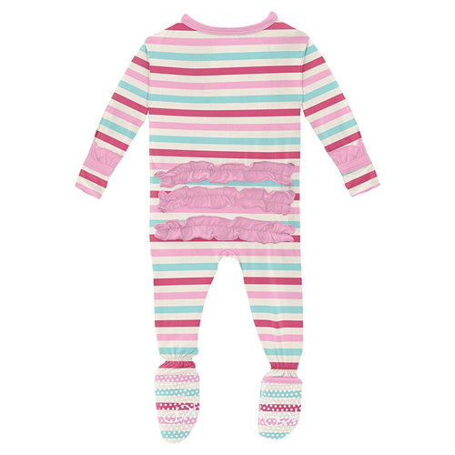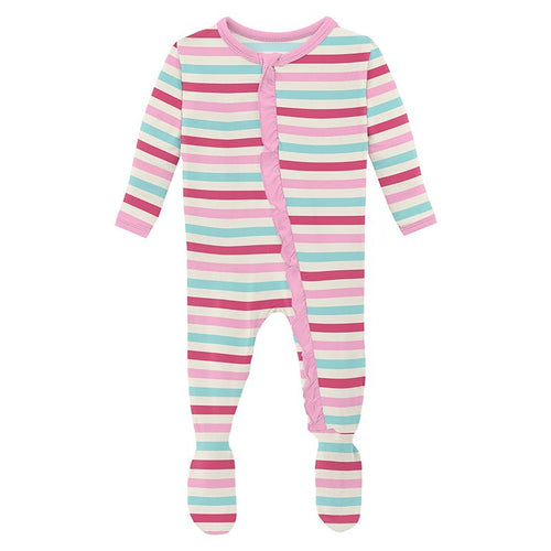 Kickee Pants Print Classic Ruffle Footie with Zipper - Sock Hop Stripe