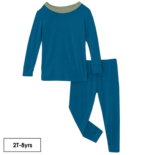Kickee Pants Pajama Set - Cerulean Blue with Silver Sage