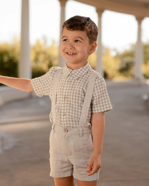 Quincy Mae Woven Boxy Top - Silver Gingham