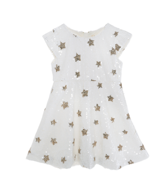 Doe a Dear Cap Sleeve Star Sequin Fit n' Flare Dress - White