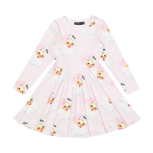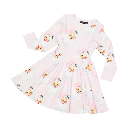 Rock Your Baby Pink Santa Long Sleeve Waisted Dress