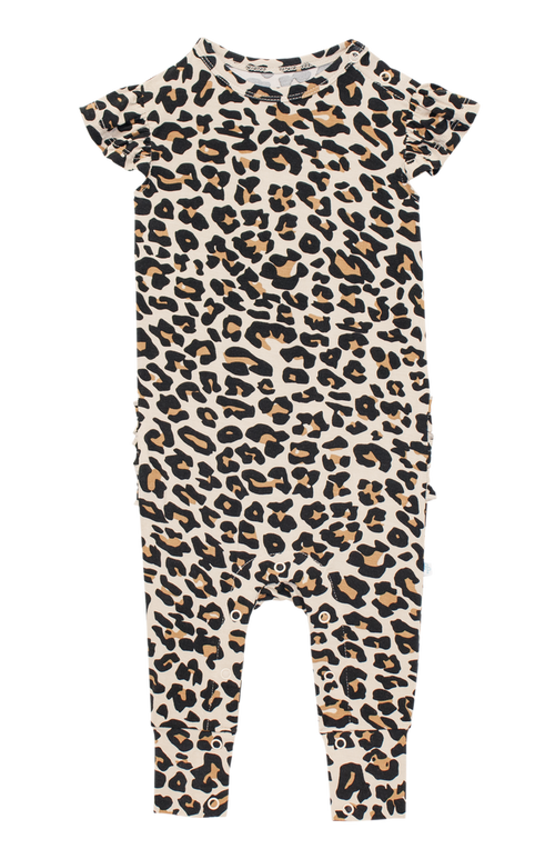 Posh Peanut Ruffle Cap Sleeve Romper - Lana Leopard Tan