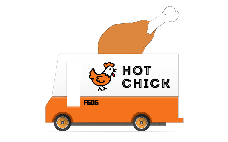We’re not too chicken to admit it. Fried Chicken is our favorite. We love it so much we decided to make a Chicken Van, complete with a fun rubber drumstick topper.