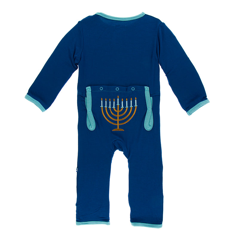 Kickee Pants Holiday Layette Applique Coverall - Navy Menorah