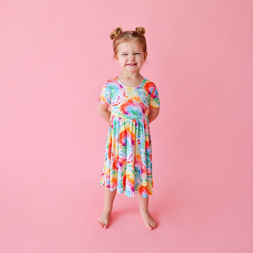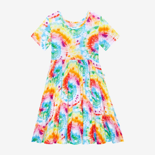 Posh Peanut Short Sleeve Twirl Dress - Totally Tie Dye