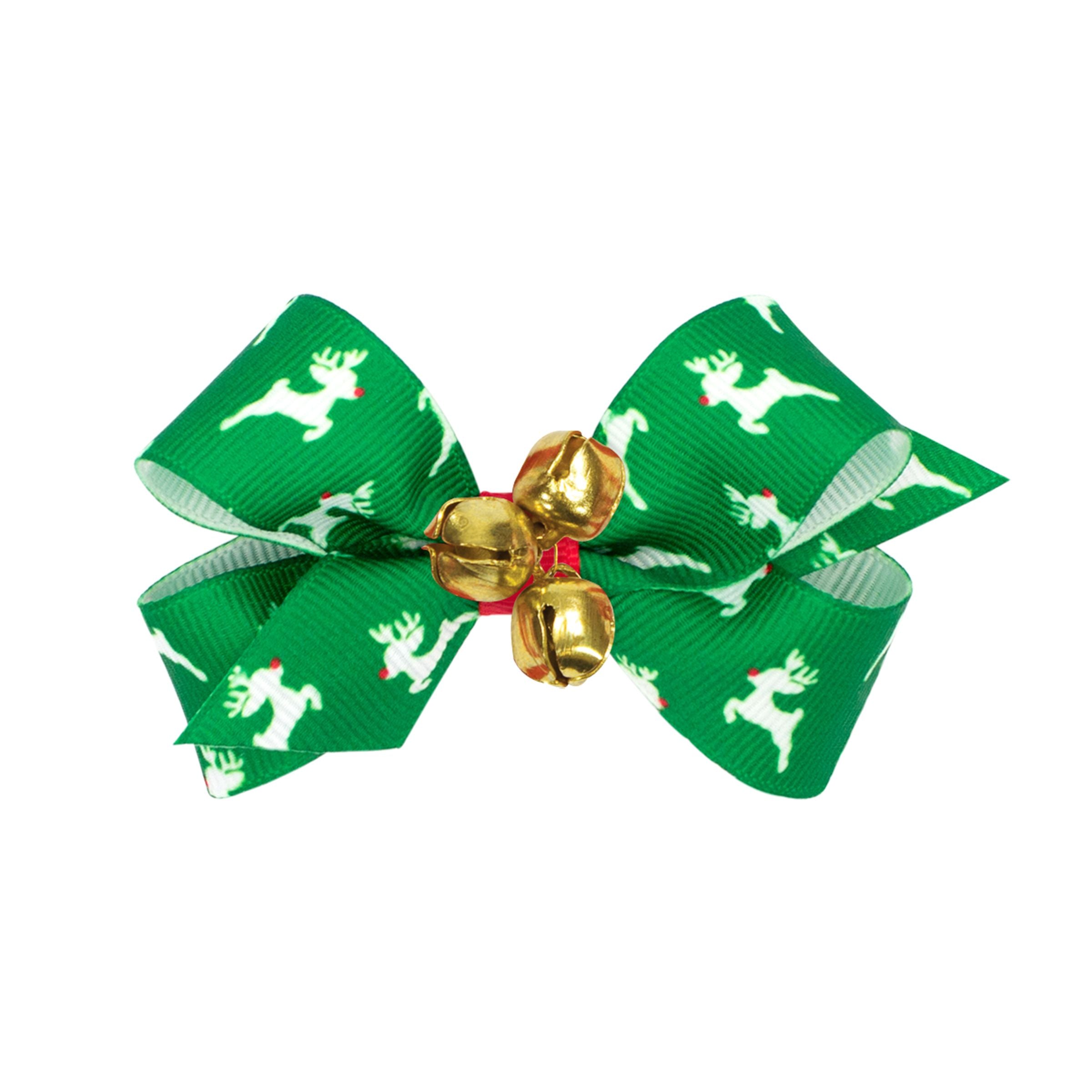 Wee Ones Mini Bow with Bells - Green Reindeer