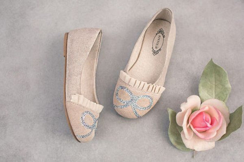 JOY FOLIE Girls' Pippa Glitter Flats - Almond