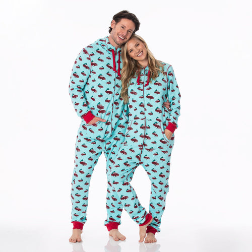 Kickee Pants Women's Long Sleeve Jumpsuit with Hood - Iceberg Trucks and Trees
