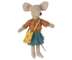 A classic Maileg item; Mum mouse, now in new clothes. This mouse fits furniture and accessories in size mouse. Buy more clothes separately, clothes in size mum/dad fit this mouse.