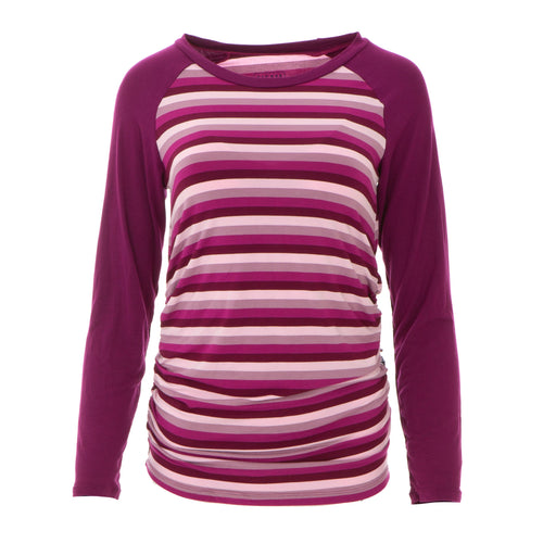 Kickee Pants Print Long Sleeve Raglan Maternity Tee - Coral Stripe