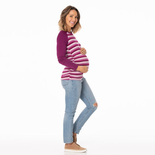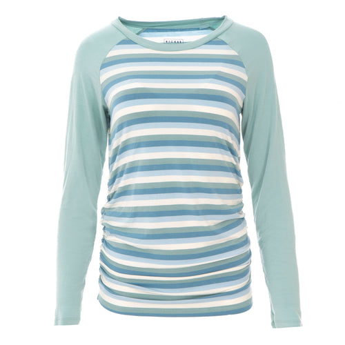 Kickee Pants Print Long Sleeve Raglan Maternity Tee - Oceanography Stripe