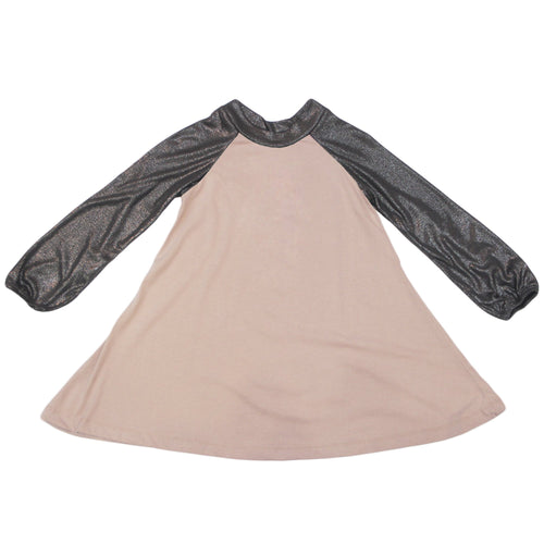 No Biggie Blush Pink Twirly Dress with Shiny Sleeves