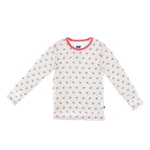 Kickee Pants Print Long Sleeve Girl's Fitted Tee - Candy Apple Rose Bud