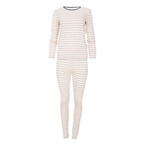 Kickee Pants Women's Print Long Sleeve Fitted Pajama Set - Everyday Heroes Multi Stripe Everyday Heroes
