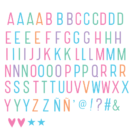 Pack of 85 letters and symbols in pretty pastels. For those who wish to add a touch of colour to their lightboxes.