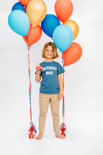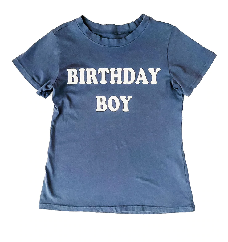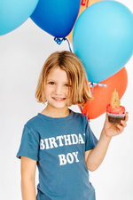 Birthday Boy tee in a nice midnight blue color. Perfect for a bday party, school party to show off his special day.