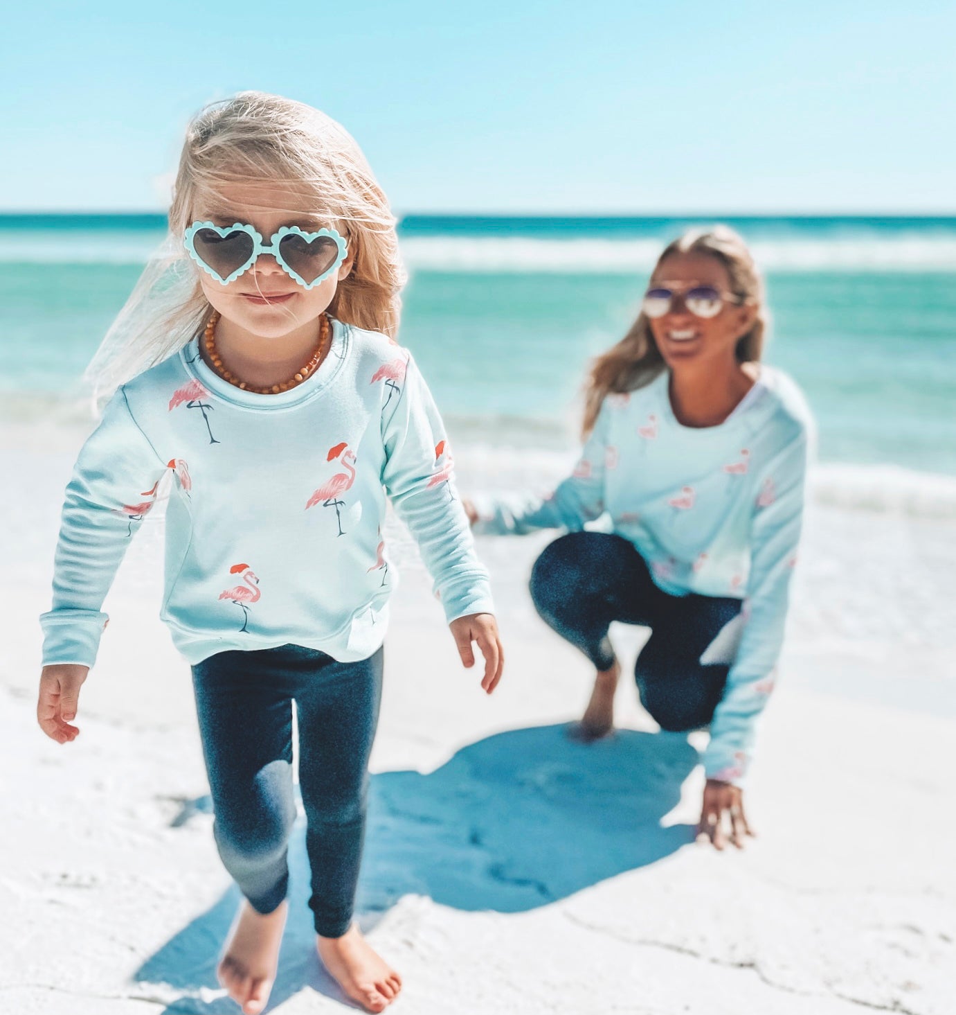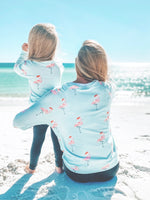 This festive Santa Flamingo sweatshirt is the perfect cozy pieces for a holiday beach visit! Made of the softest fabric you will not want to take off. Also available in children's sizes for a matching look.