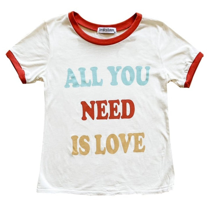 Brokedown Women's All You Need Is Love Tee, off white tee with a vintage look.