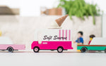 Soft-serving up good looks. As far as a symbol of simpler times and a carefree way to stuff sugar and calories in your childhood, you can’t beat the ice cream truck. We popped a melty top, added a bright pink base, sprinkled a pun, and voila! Iconic toy made. No ice cream truck jingle – you’re welcome.