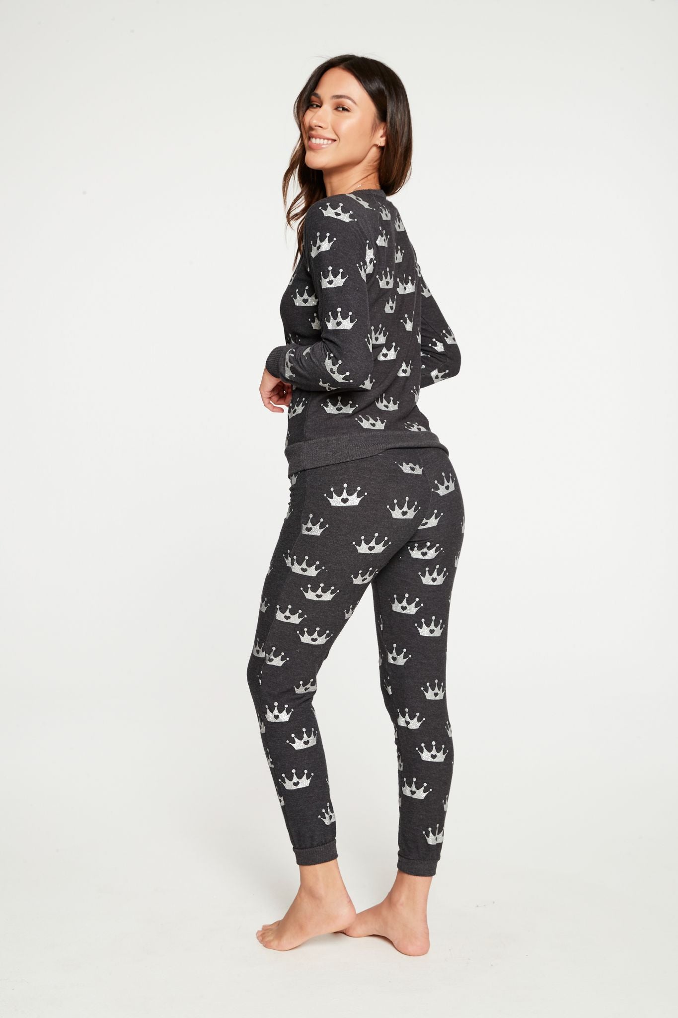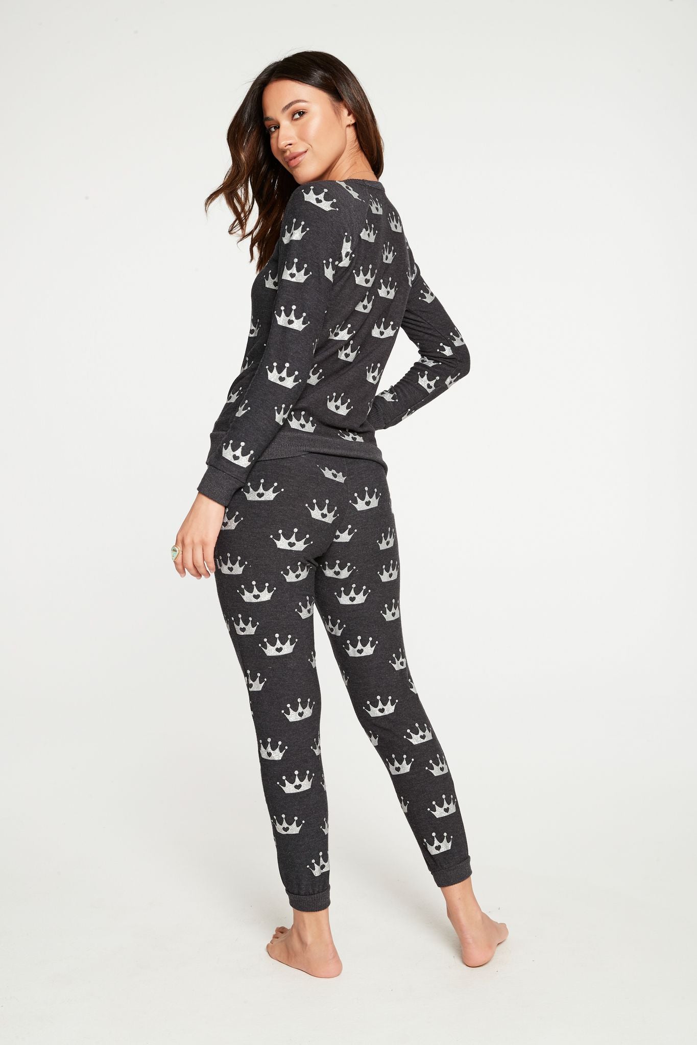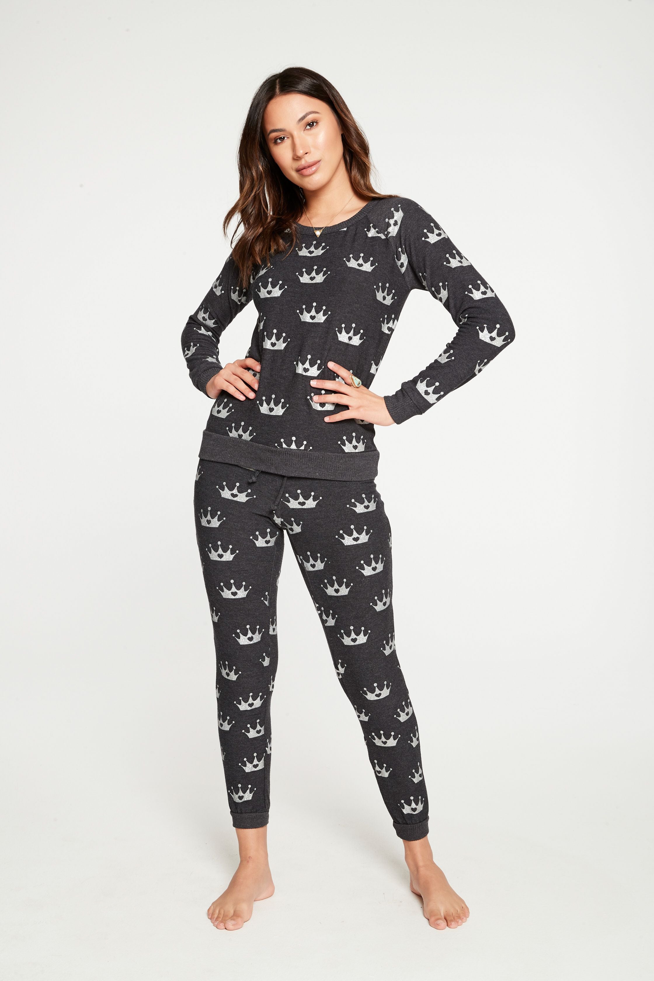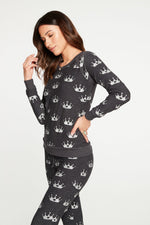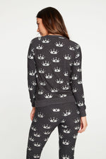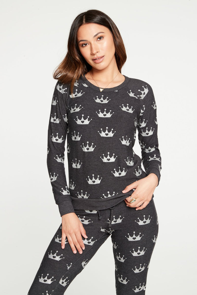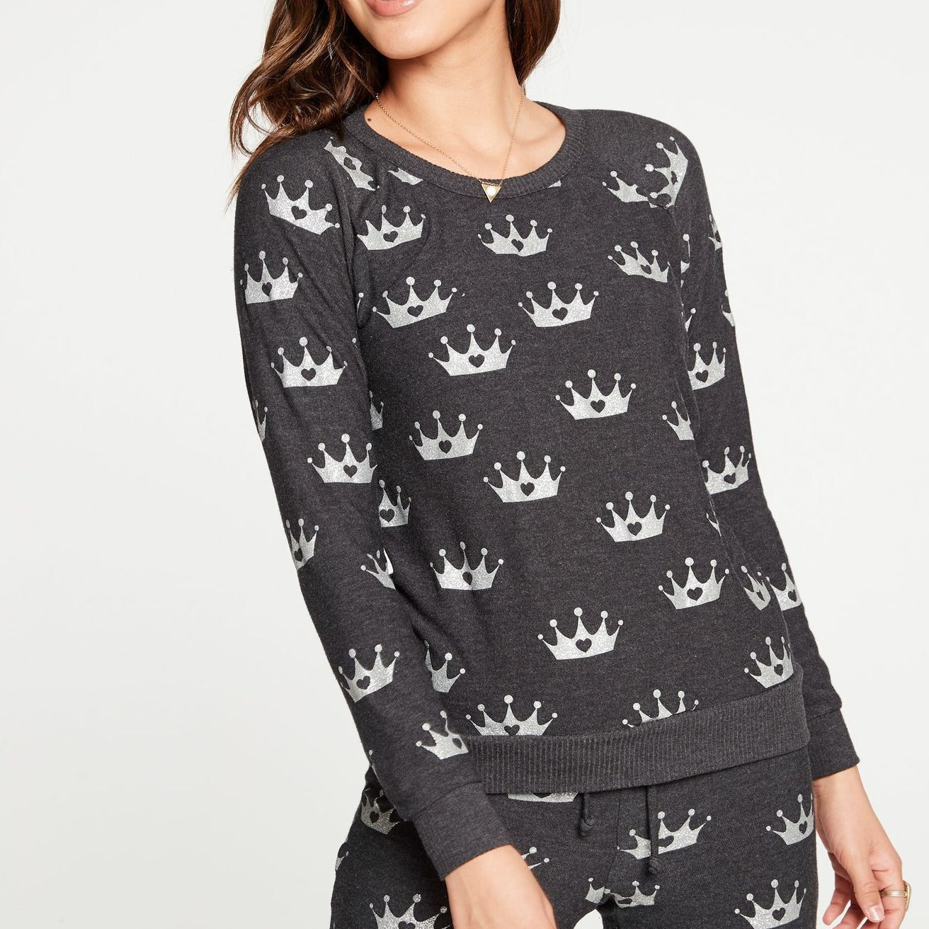 Chaser Women's Long Sleeve Raglan Pullover - Black Glitter Crowns