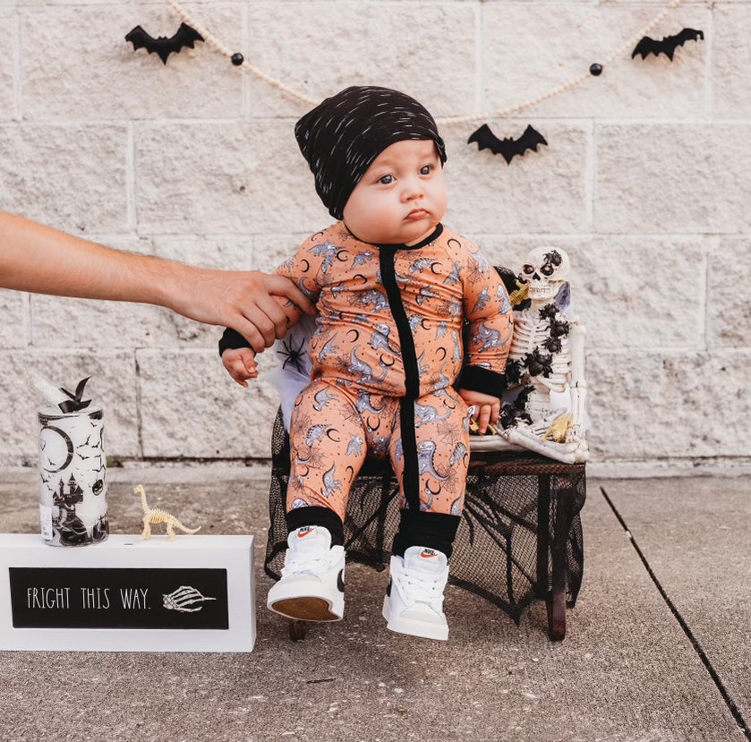 Pajamas, Halloween Pajamas, Halloween PJ's, Dino Pajamas, Dinosaur PJ's, Baby Halloween Romper, Baby Halloween Sleeper.