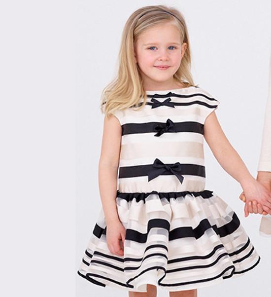 Black and cream stripe organza dress with bow details. Gorgeous shiny organza perfect for any special occasion.