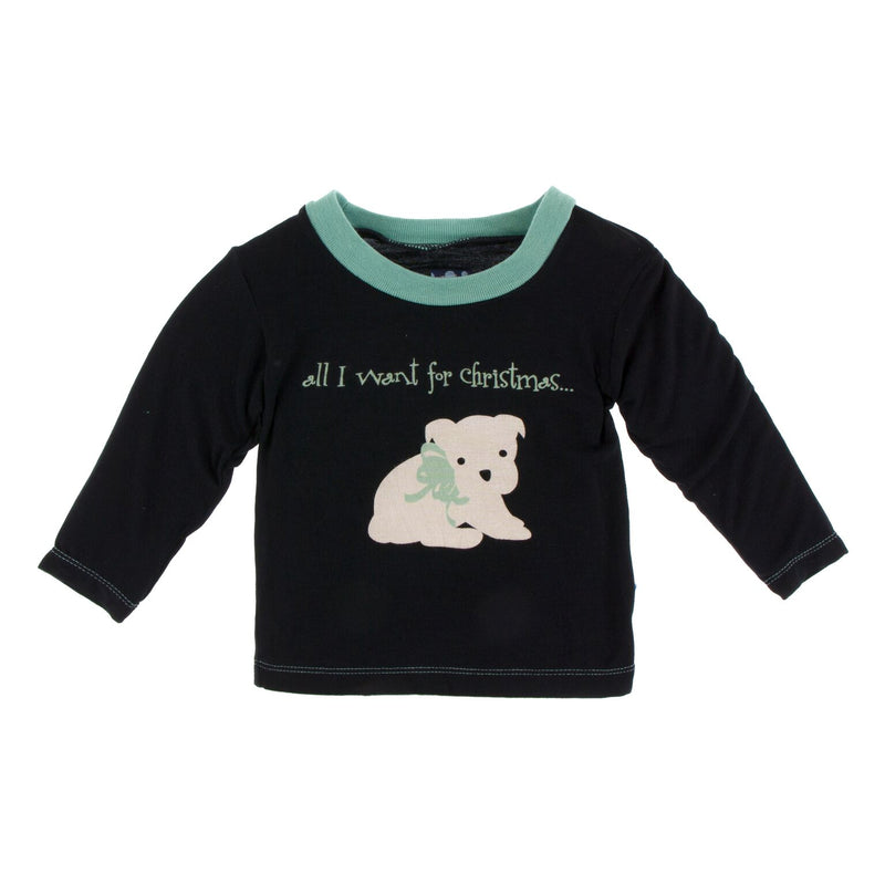 Kickee Pants Crew Neck Tee - All I Want for Christmas Midnight Puppy