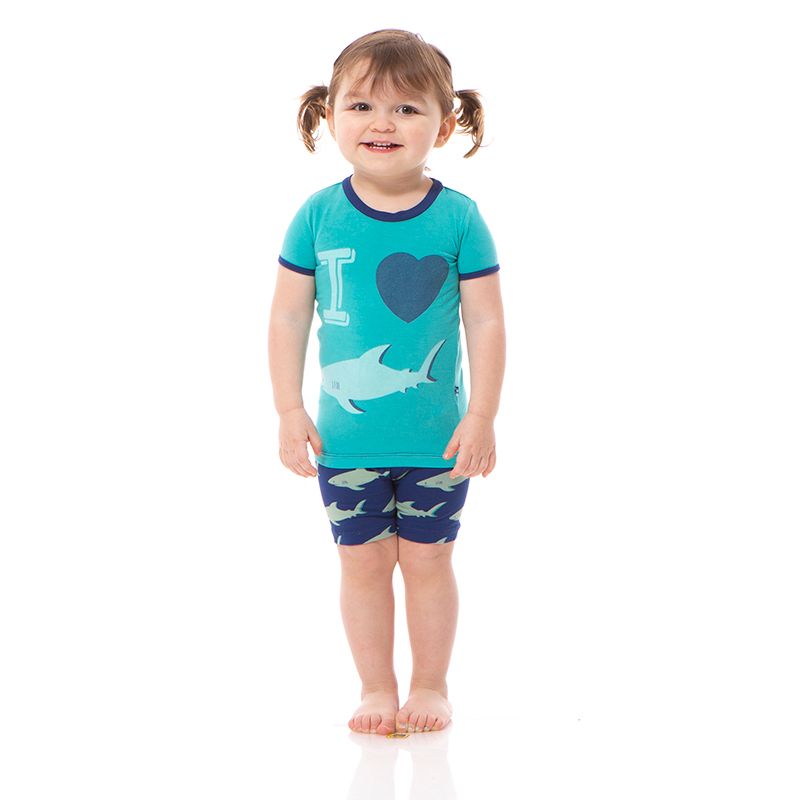Kickee Pants Pajama Set with Shorts - Flag Blue Sharky