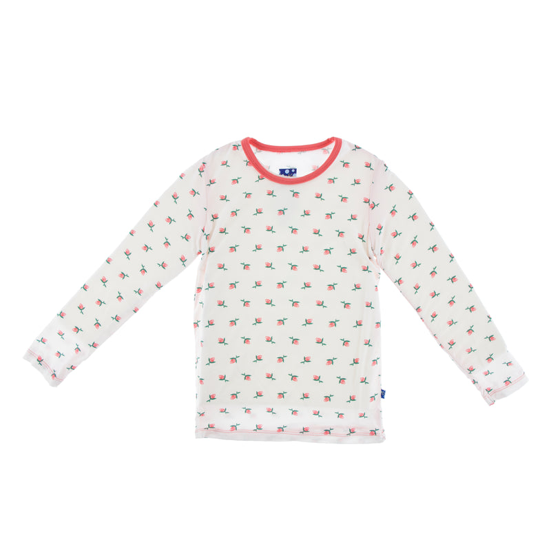 Kickee Pants Print Long Sleeve Girl's Fitted Tee - Natural Rose Bud