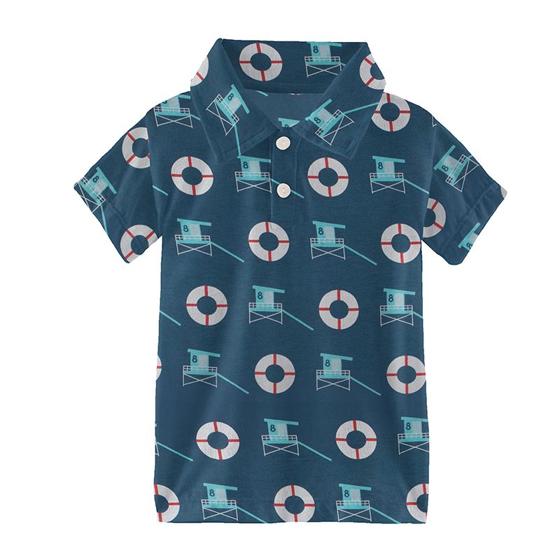 Kickee Pants Short Sleeve Polo - Deep Sea Lifeguard