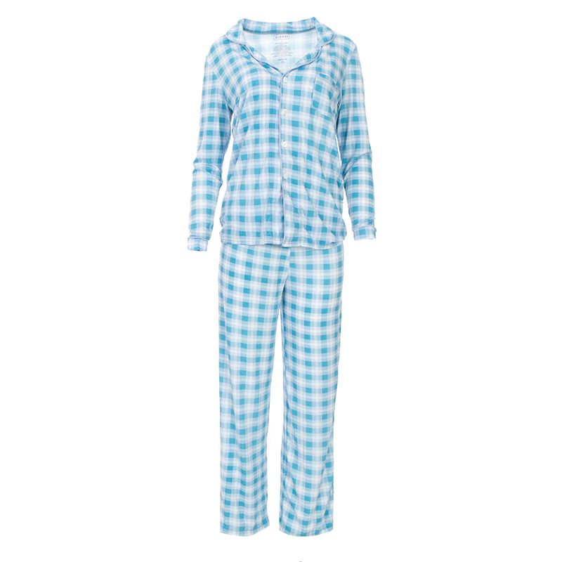 Kickee Pants Women's Print Long Sleeve Collared Pajama Set - Blue Moon 2020 Holiday Plaid