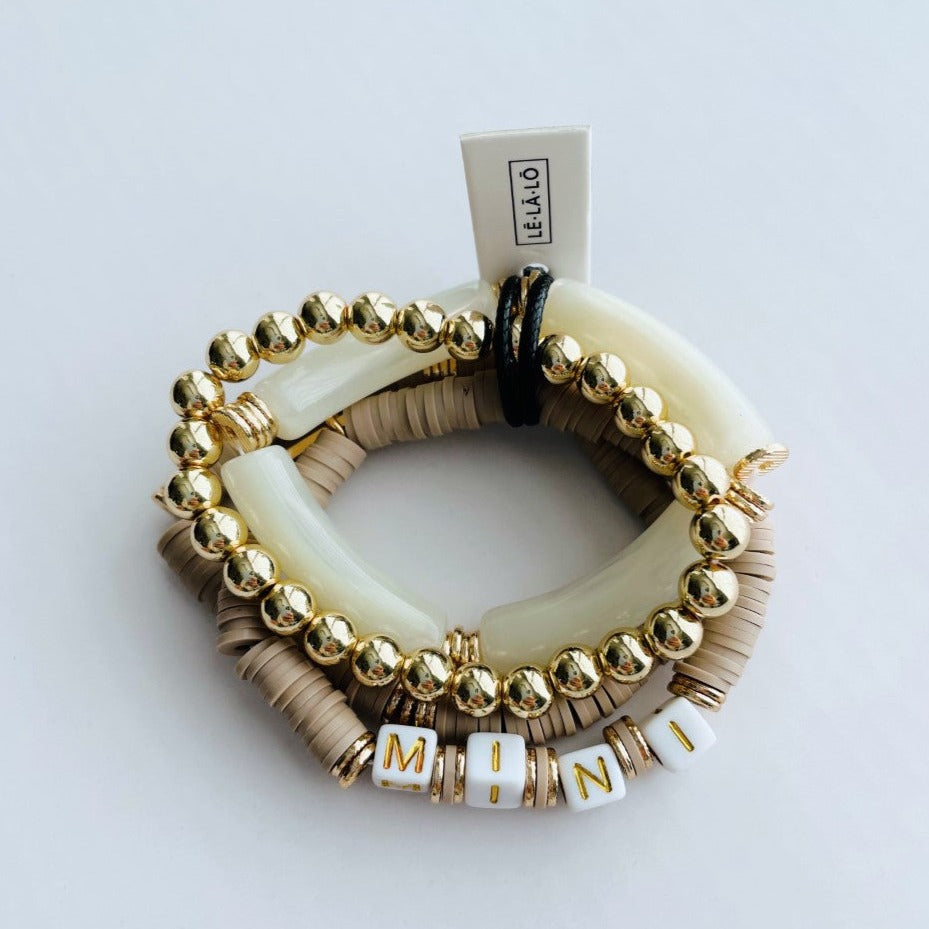 LeLaLo Mini Tubular Beaded Bracelet Set - Child Taupe