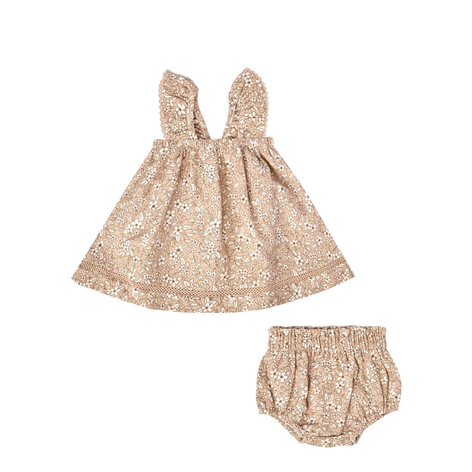Quincy Mae Ruffle Tank Dress + Bloomer Set - Apricot Floral