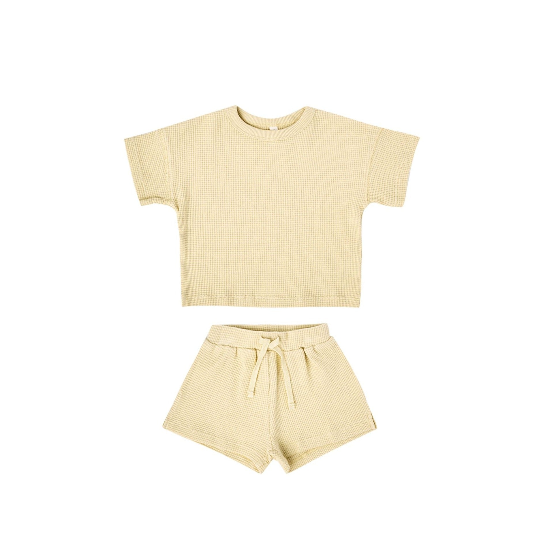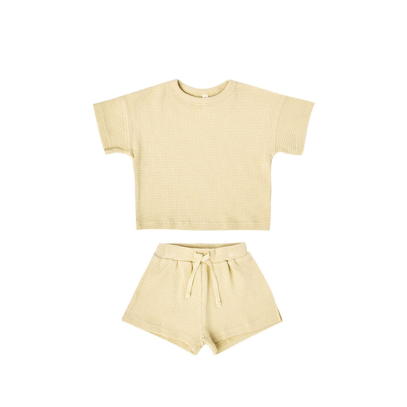 Breathable and soft, this top and bottom organic waffle knit set is ready for play.