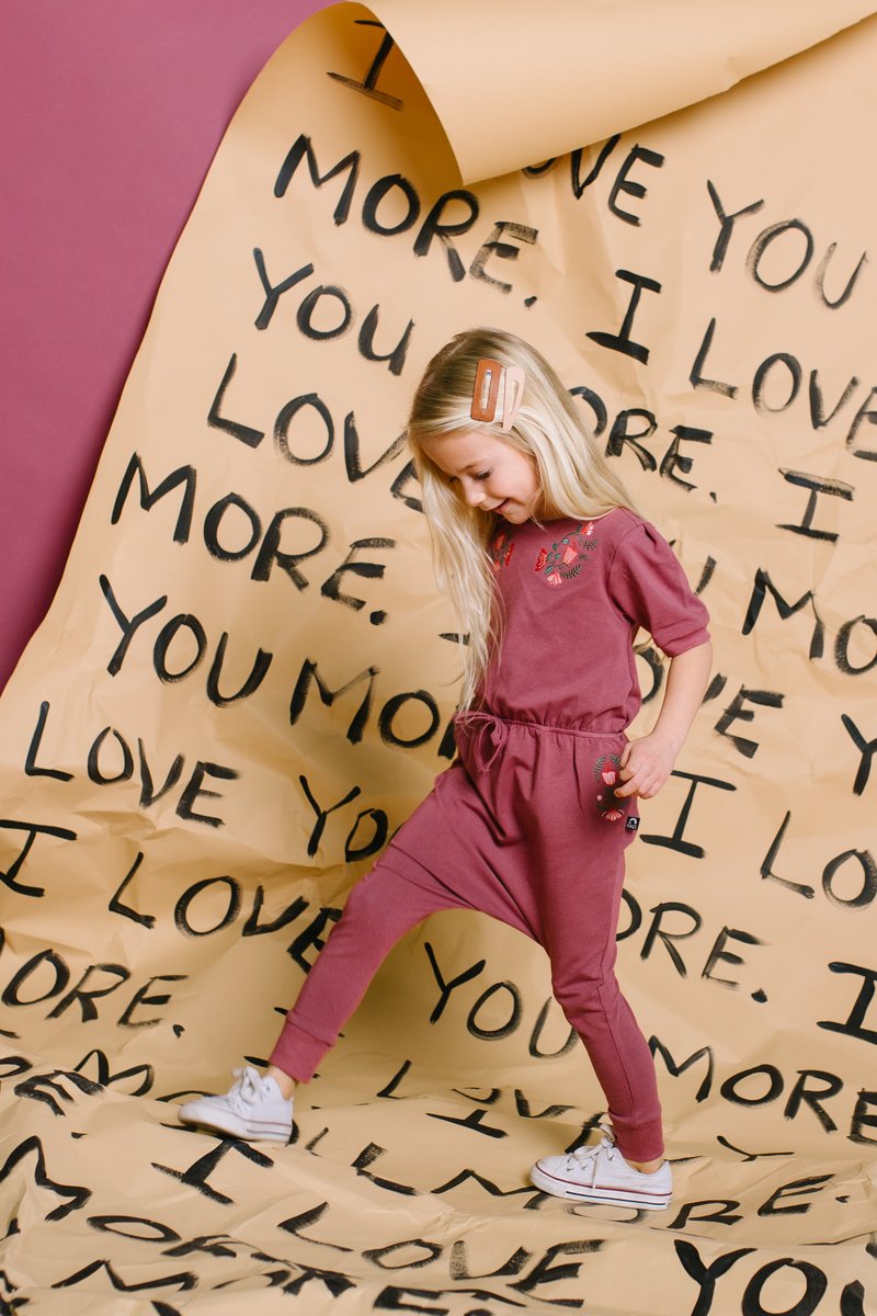 Girl, you fancy! Flower embroidery at the collar and hips add an extra dose of Valentine's love to this limited edition gem that's a must-have. Features our dynamically stretchy neckline (meaning no snaps!) plus puff sleeves and an elasticized gathered waist with a faux bow.