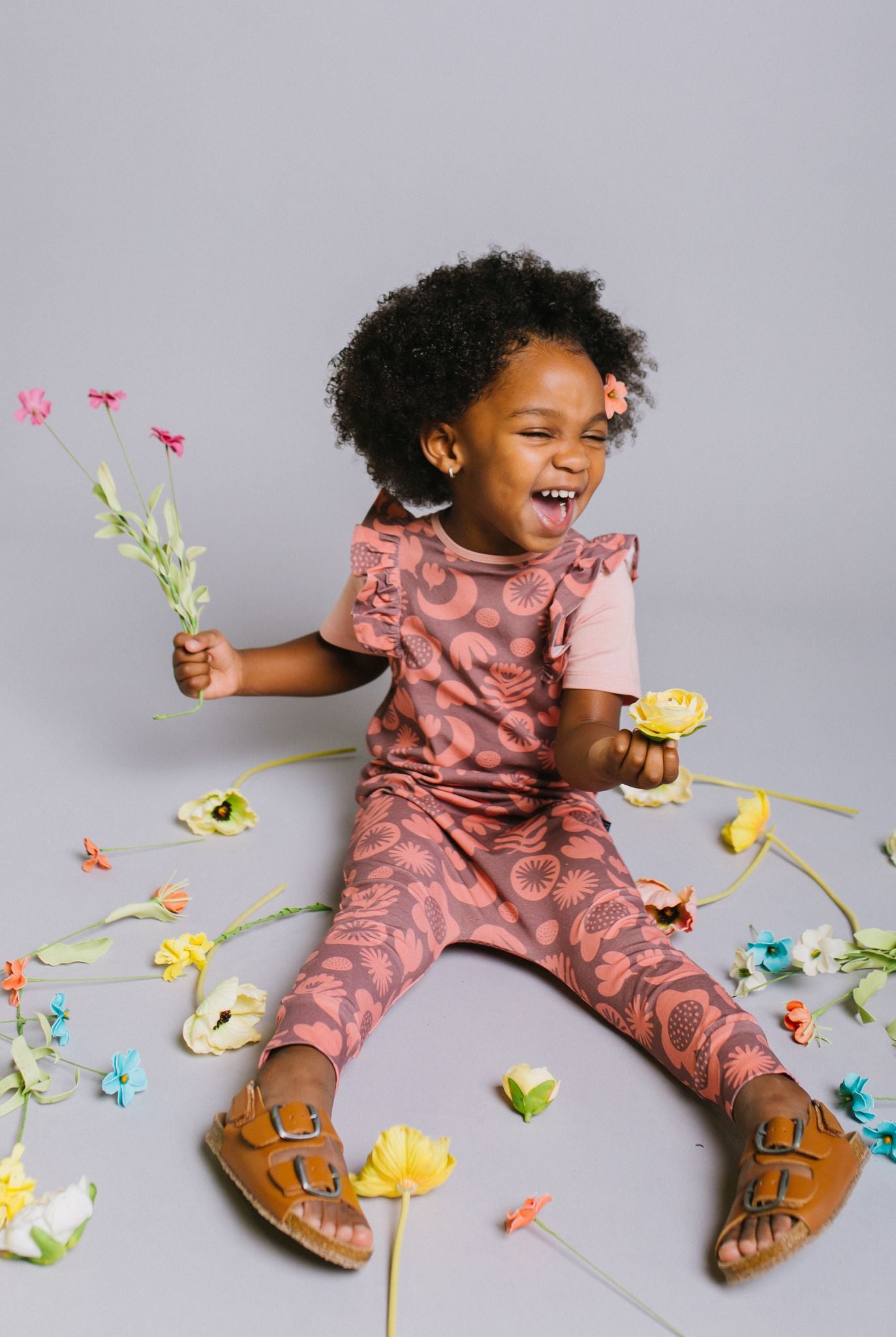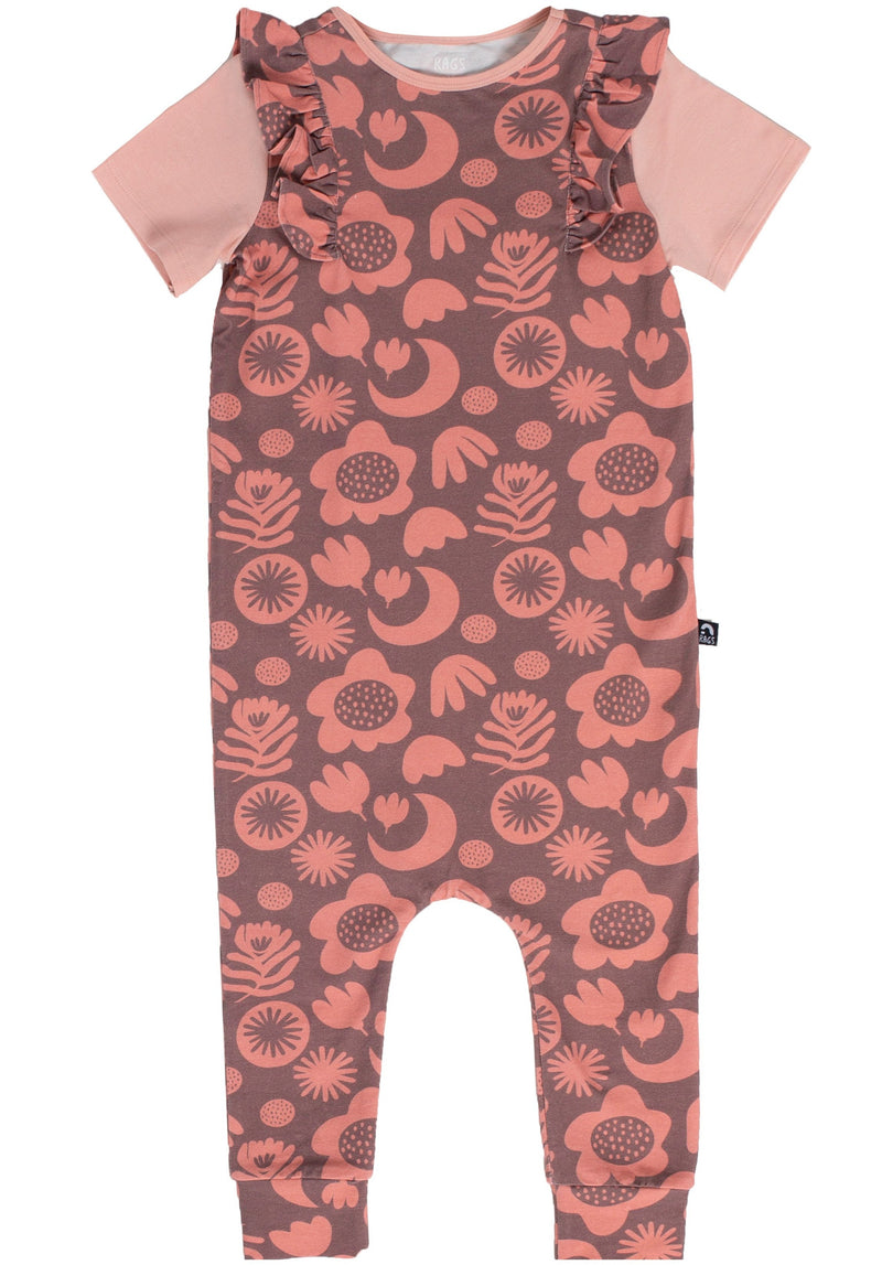 Rags Short Sleeve Ruffle Romper - Roan Rouge Collage Floral