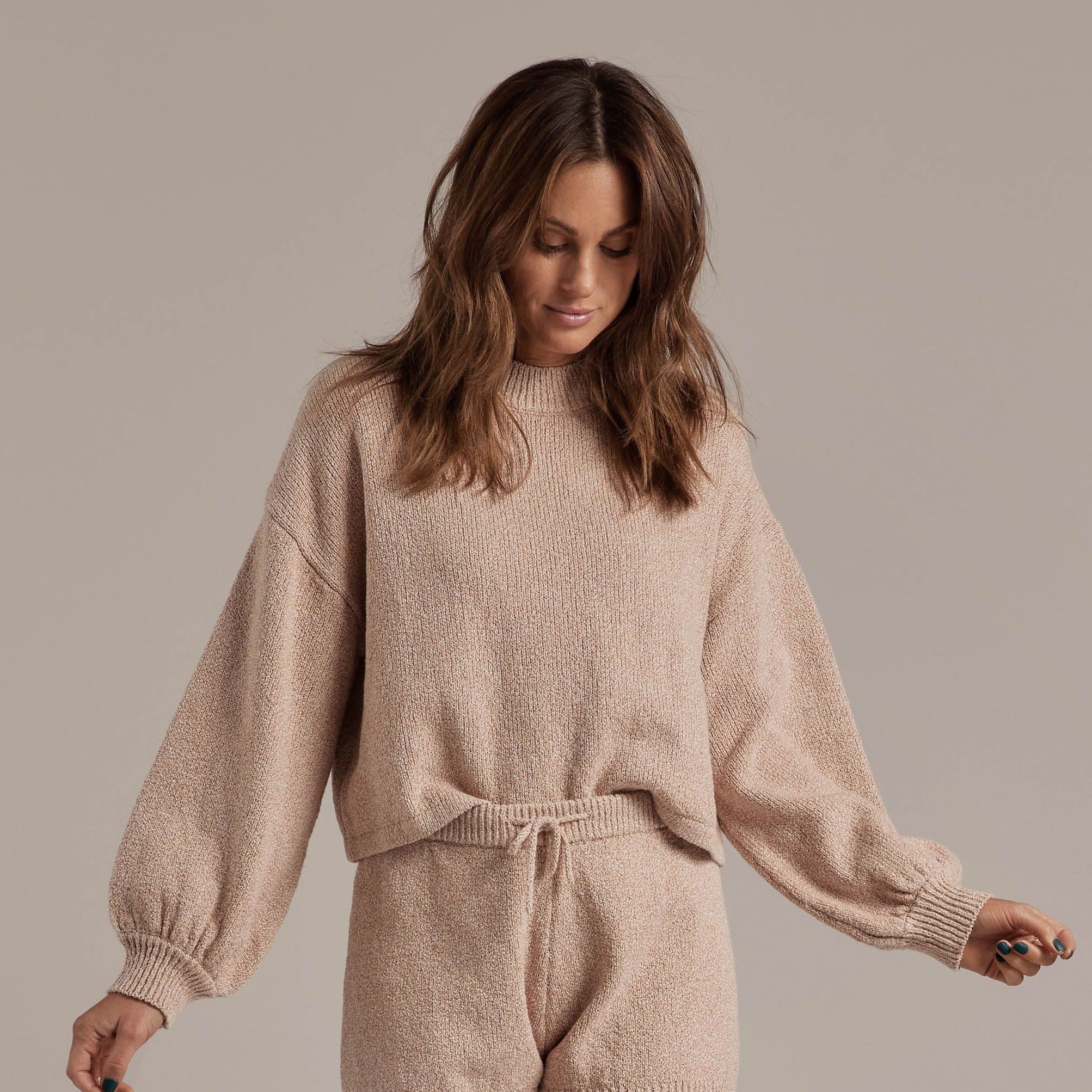 Our Knit Sweater features billowy sleeves and a cropped silhouette. Pairs great with our Knit Shorts or your favorite pair of jeans! Women's, Womens, Sweater, Sweaters, Sweatshirt, Rylee + Cru AW22 Collection Drop 2.
