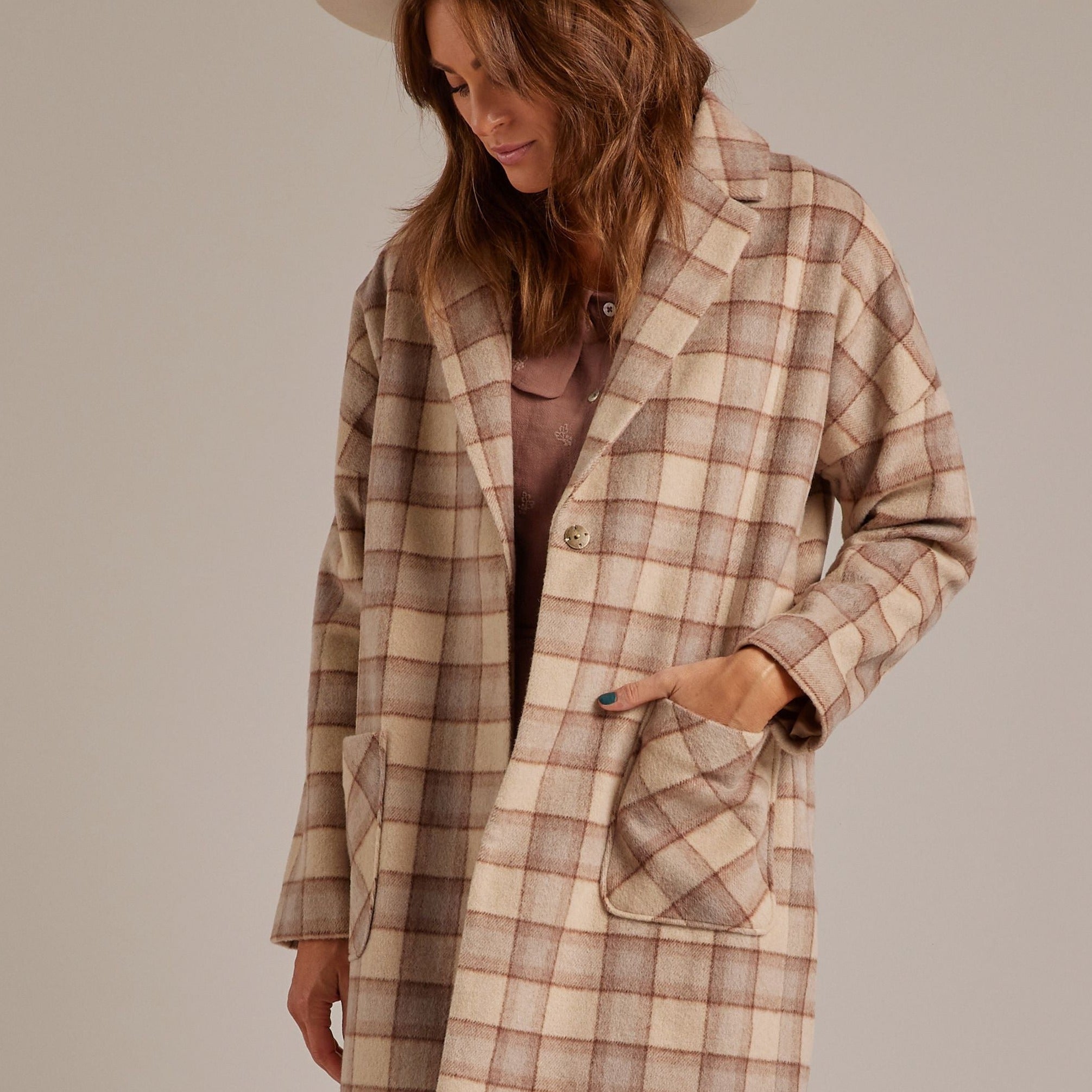 Rylee + Cru Women's Longline Coat - Grey Plaid