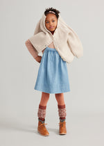 Chunky cardigan, house coat in the most luxurious, plush roving yarn with ribbed yoke.