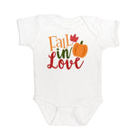 You might just *fall in love* with this cute Autumn design! This 100% cotton white baby bodysuit is decorated with an orange, olive green, and burgundy graphic. It pairs perfectly with Sweet Wink’s Gold Glitter Tutu for photos at the pumpkin patch or a Fall-themed birthday party!
