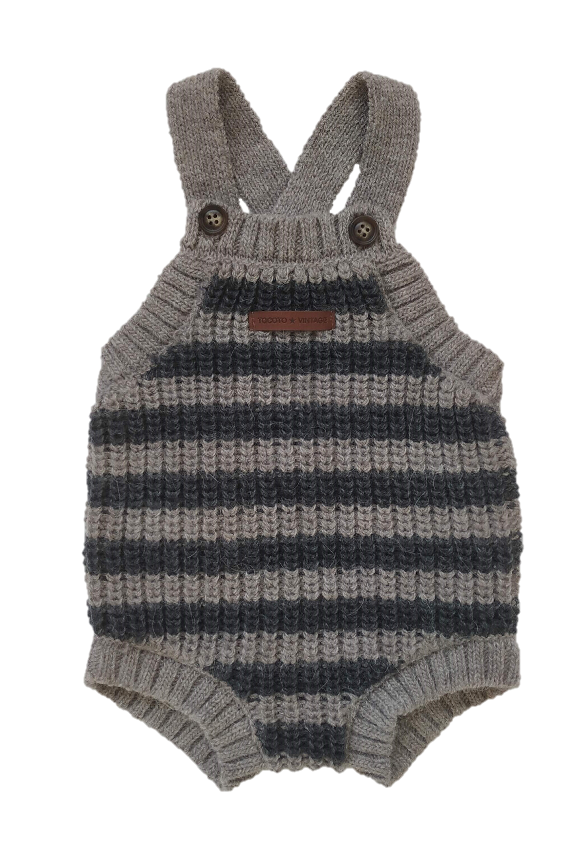 Tocoto Vintage Striped Knit Romper - Dark Grey