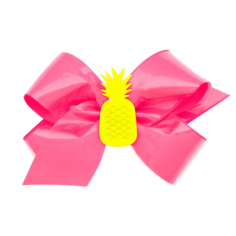 Wee Ones Neon Vinyl Bow with Detachable Clip - Pink Pineapple